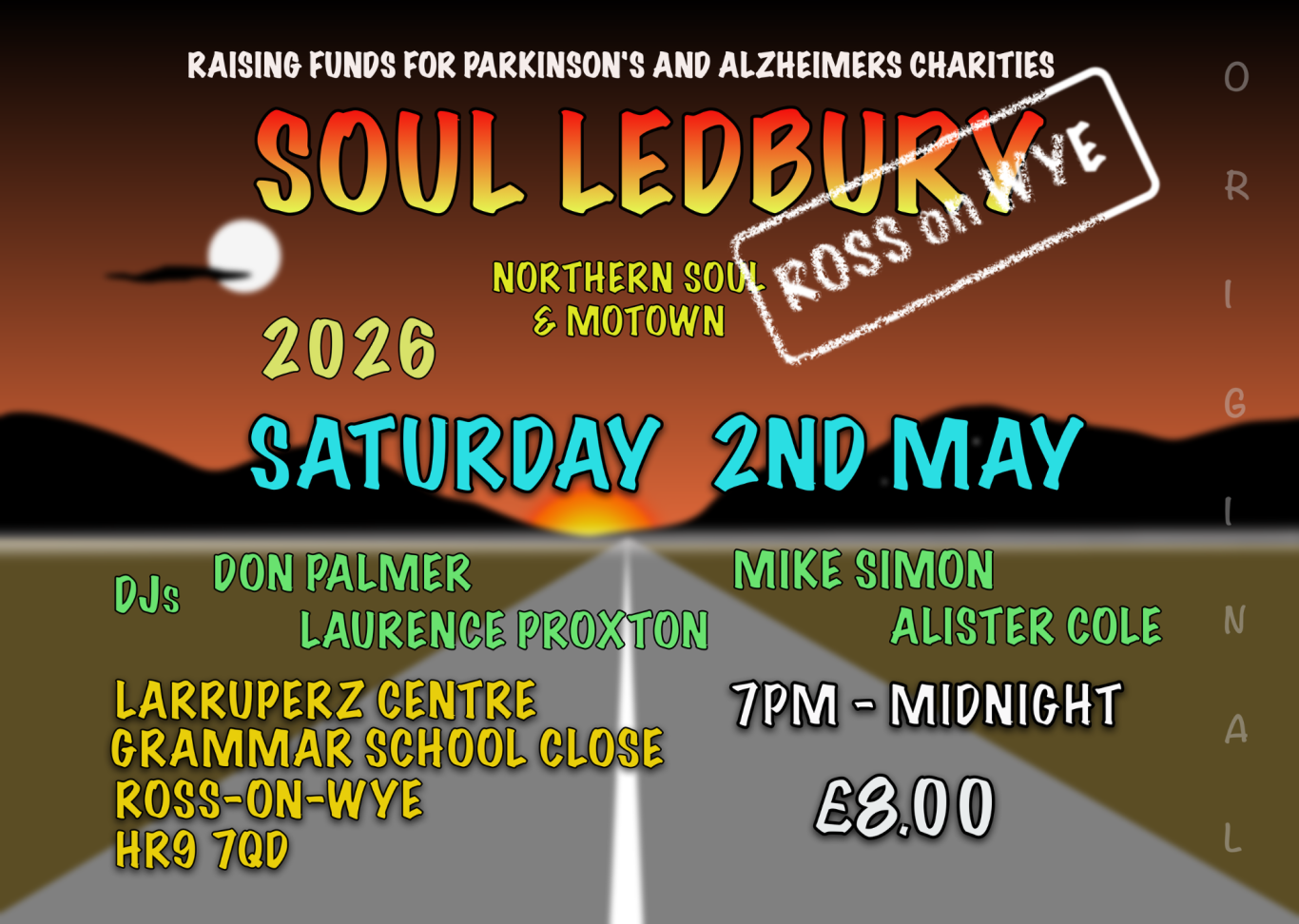 We are currently in our tenth year and based now in a much bigger venue in Ross on Wye and getting more people attend each time. All profits from every event, which are held on the first Saturday every two months starting January, have gone and do go to Parkinson's and Alzheimers alternately.